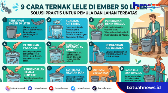 Dengan perawatan yang tepat, ternak lele di ember tidak hanya membantu memenuhi kebutuhan konsumsi, tetapi juga berpotensi menjadi sumber penghasilan tambahan bagi masyarakat.